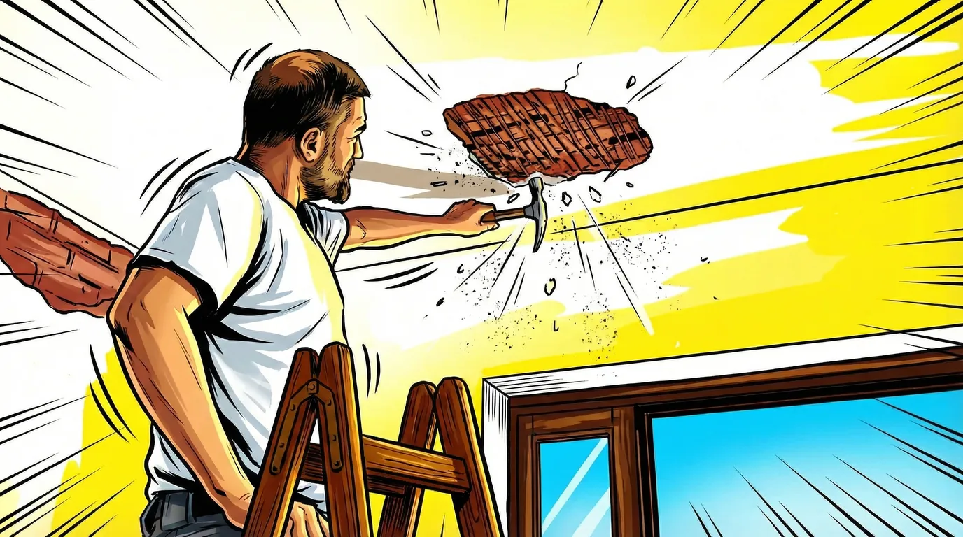 • Maurerhammer: Damit klopfst du die Decke systematisch ab, um hohle und lose Stellen am veränderten Klang zu erkennen – der wichtigste Schritt vor jeder anderen Maßnahme.