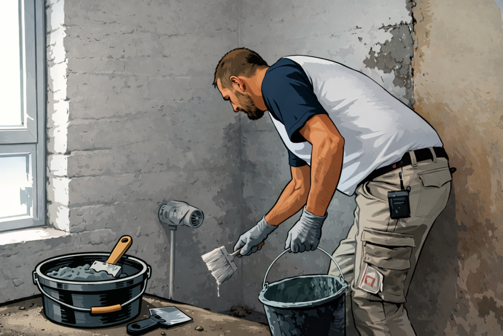 Für punktuelle Feuchtigkeitseintritte eignen sich ergänzend Quellzemente oder Wasserstop-Produkte. Von einfachen Einkomponenten-Anstrichen ist bei stärkerem Feuchtigkeitsdruck eher abzuraten – sie sind weniger belastbar.